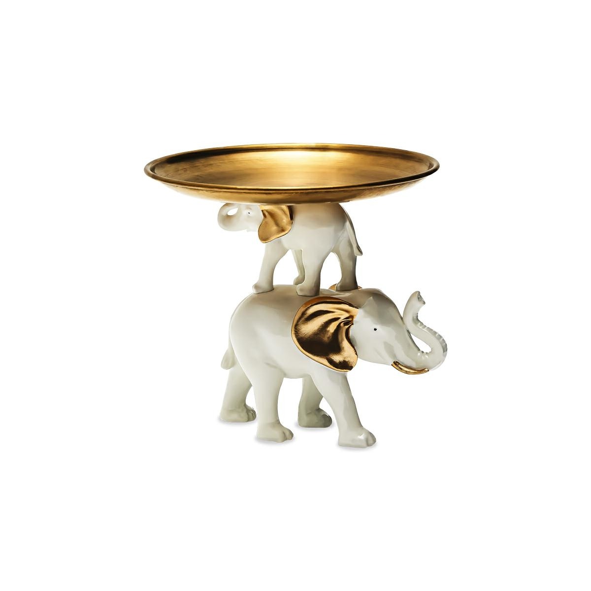 Alzata centrotavola con elefante decorativo in finitura bianco e oro.