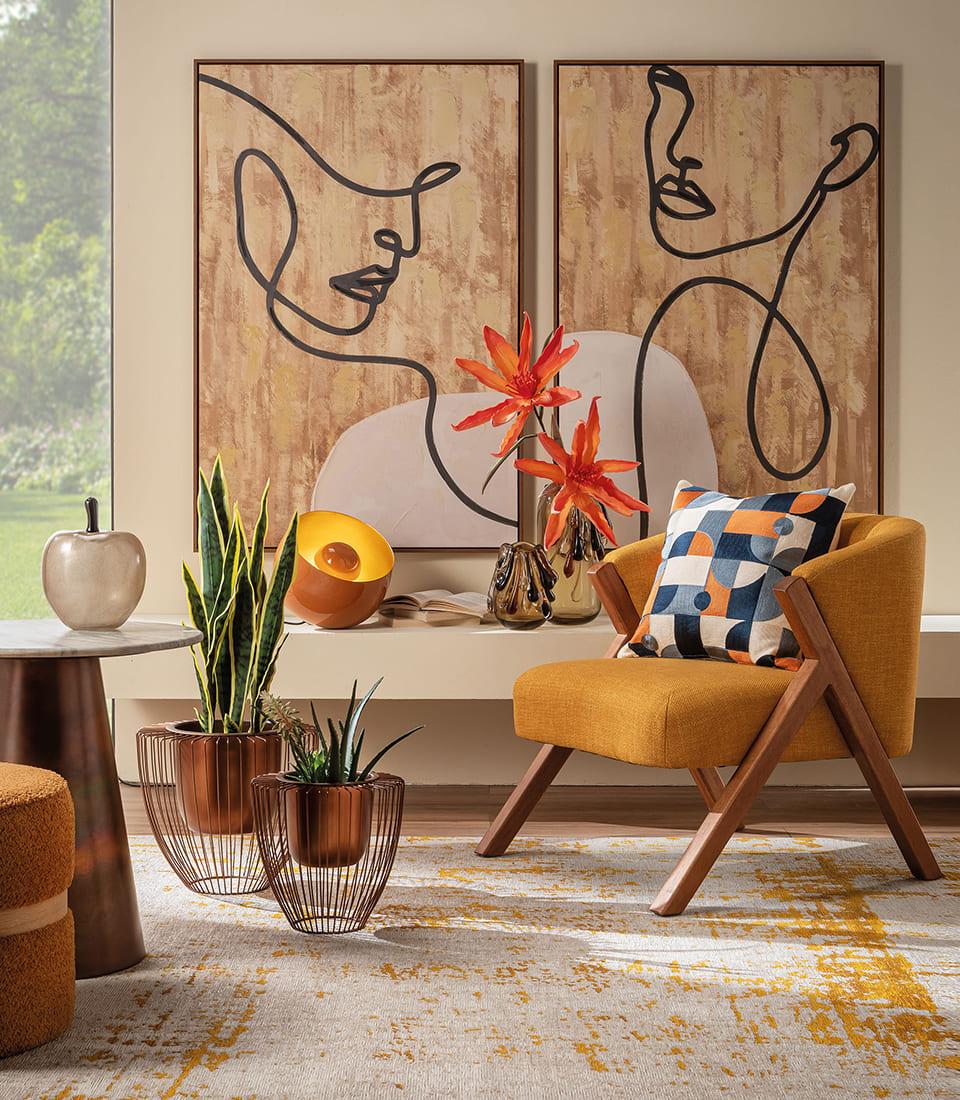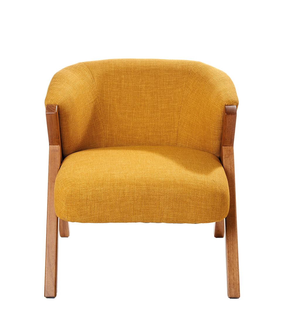Questa poltrona di design unisce estetica contemporanea e qualità costruttiva in un complemento d’arredo pensato per durare nel tempo. Il rivestimento in tessuto color senape dona carattere e luminosità all’ambiente, diventando un punto focale caldo e raffinato all’interno del soggiorno, dello studio o di una zona lettura.