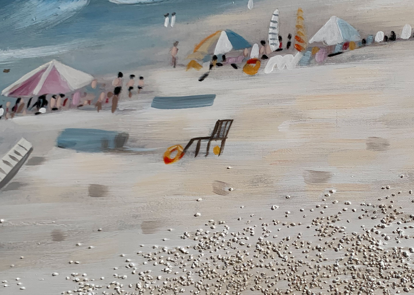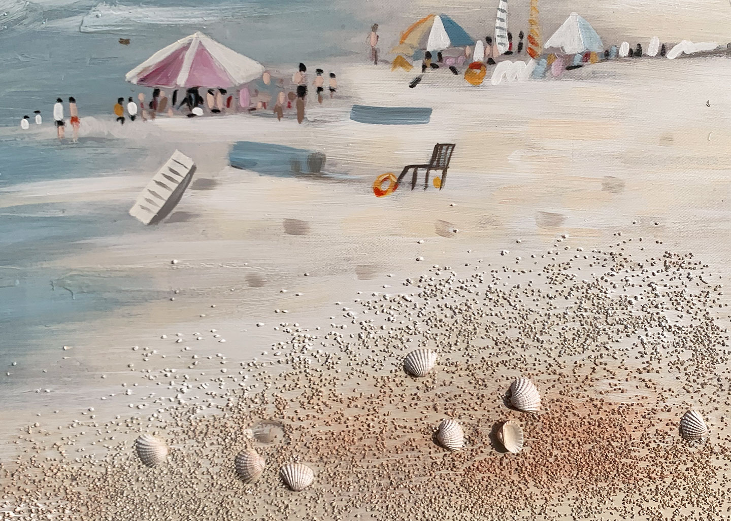 Free beach è un quadro che rappresenta uno scorcio sulla spiaggia, dipinto a mano su tela di cotone.