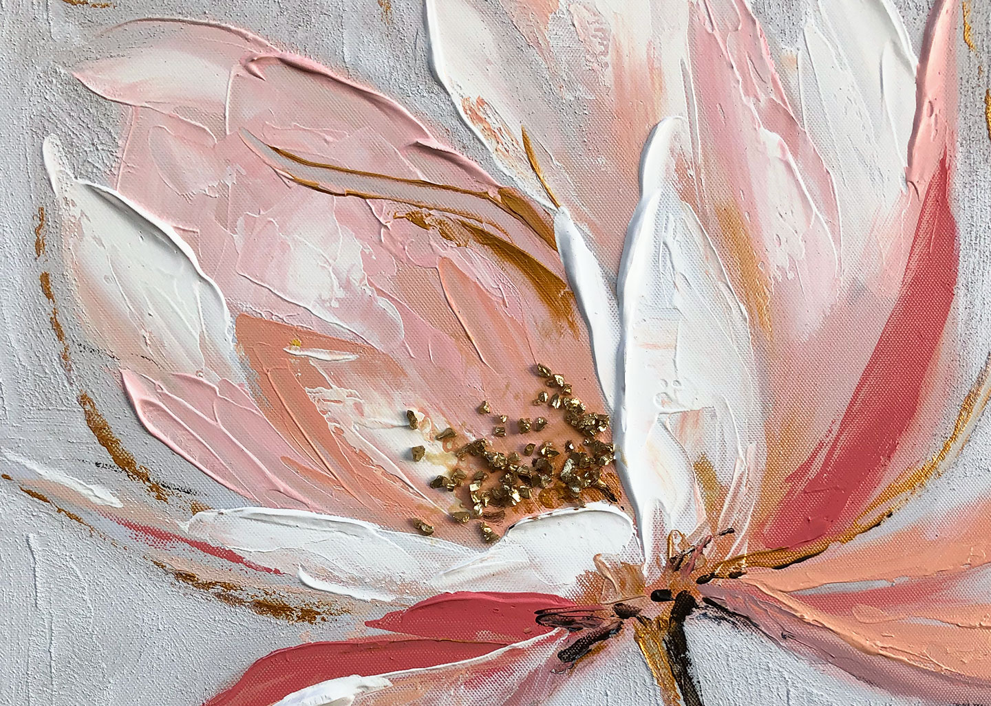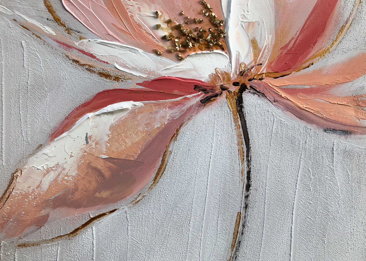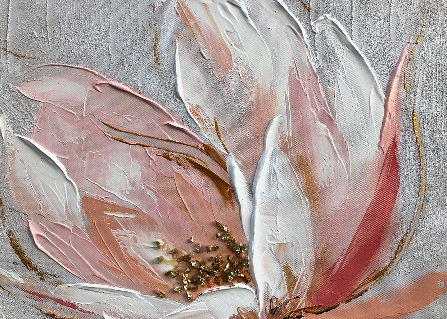 Silk flower 1 è un quadro dai toni caldi che rappresenta un fiore, dipinto a mano su tela di cotone.