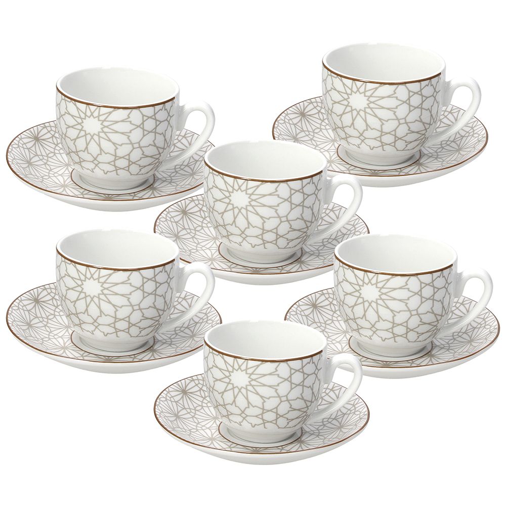 - Confezione: 6 tazze con piattino coordinato