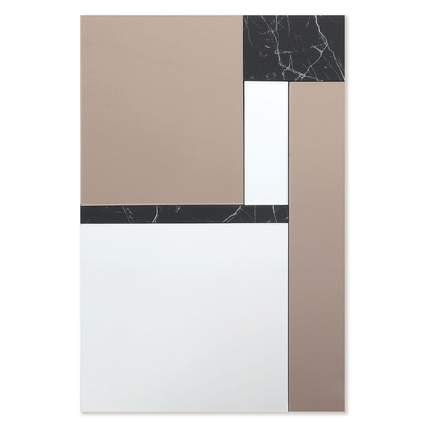 La sezione nera effetto marmo conferisce a Marquinia 2 un elemento di design unico. I dettagli raffinati e la finitura marmorizzata donano all’ambiente un tocco di lusso e classe, trasformando lo specchio in un elemento decorativo di prim’ordine.