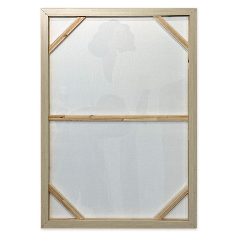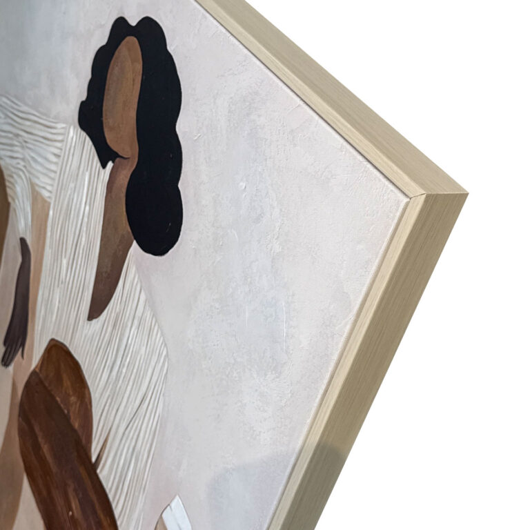 Con telaio interno in legno e cornice effetto legno, il quadro Olivia è già pronto da appendere.